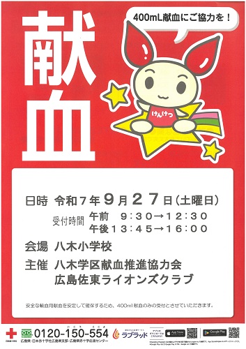 広島市立八木小学校にて、八木学区献血推進協力会と広島佐東ライ