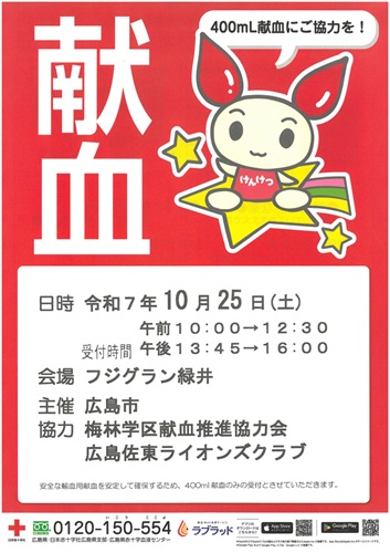 ブログをご覧の皆さま、献血にご協力をお願いします。