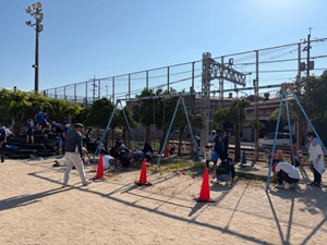 また、遊具の周辺では雑草を抜き、子どもたちが安心して遊べる環境づくり