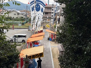 参道では夜店の設営も進んでいます。
