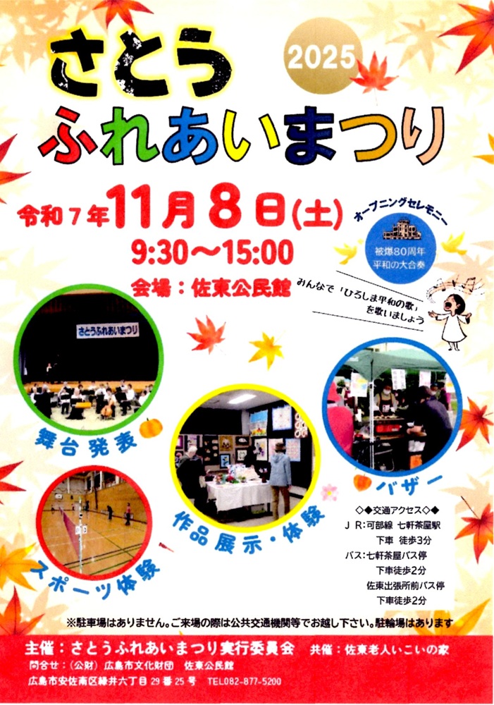 「さとうふれあいまつり」が広島市佐東公民館で開催されます。