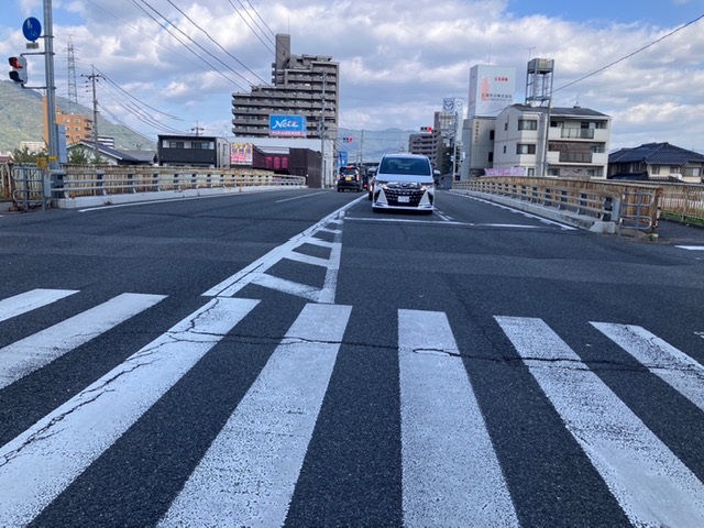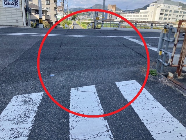 「183号線の安川に架かる安川大橋の前後に段差ができています。