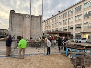 梅林学区社会福祉協議会の役員が、会場となる梅林小学校で準備を行