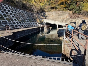 平発電所から水が流れ込んできます。 ここにたまった水を、約40メートル