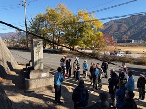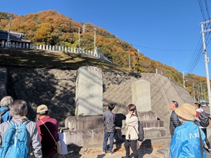 太田川発電所を見学した後は、細野神社そばの「定用水碑」を訪れました。