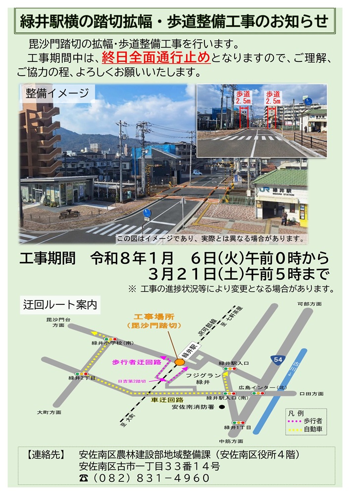 安佐南区役所・地域整備課によると、工事期間は 2026年1月6日(火)