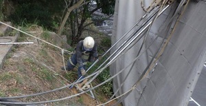 別所団地の法面では、昨年度に引き続き道路防災工事が進められていま