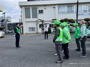 地域安全推進員の皆さんと青色パトロール車が佐東公民館に集合しました。