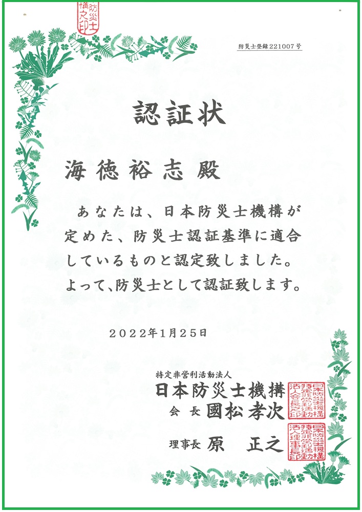 2021年12月に「防災士資格取得試験」に合格してから、早いもので4年