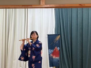 澄んだ篠笛の音色が会場に響き渡り、参加者の皆さんは静かに耳を傾け、