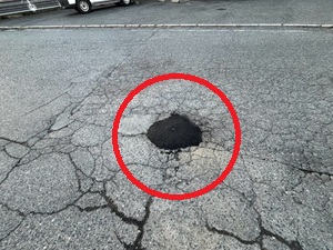 現地を確認したところ、道路上に大きく深い穴ぼこが確認されました。