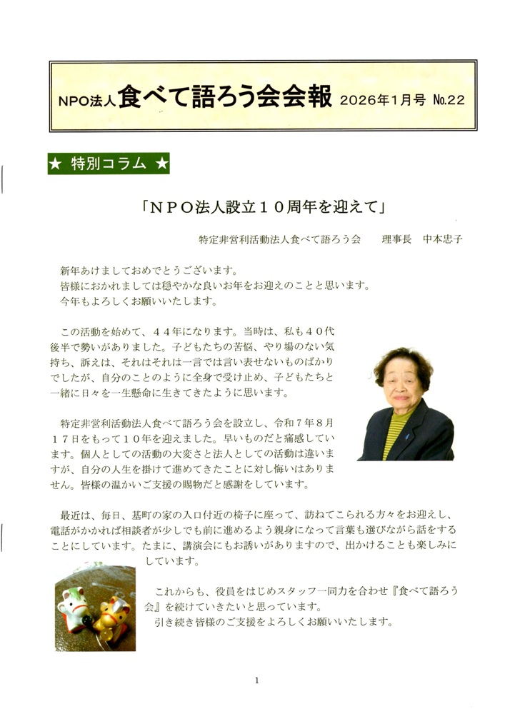 られながら歩んでこられた「食べて語ろう会」の活動は、地域社会に確か