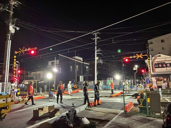 本年1月6日午前0時より、踏切を全面通行止めとして拡幅工事が開始さ
