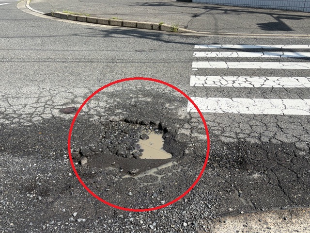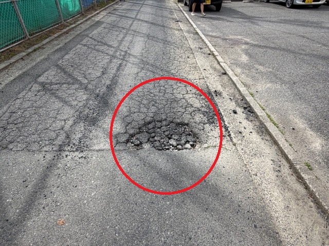 この穴ぼこは、2025年5月に補修しましたが、また大きな穴ぼこができてい